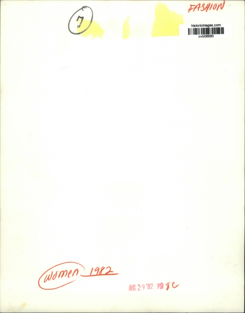 1982 Press Photo Model Wearing Three Quarter Sleeve with Flair Skirt Dress