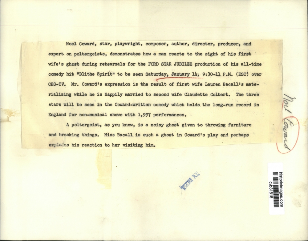 Noel Coward, star, playwright, composer, author, director, producer and expert on poltergeist, demonstrates how a man reacts to the sight of his first