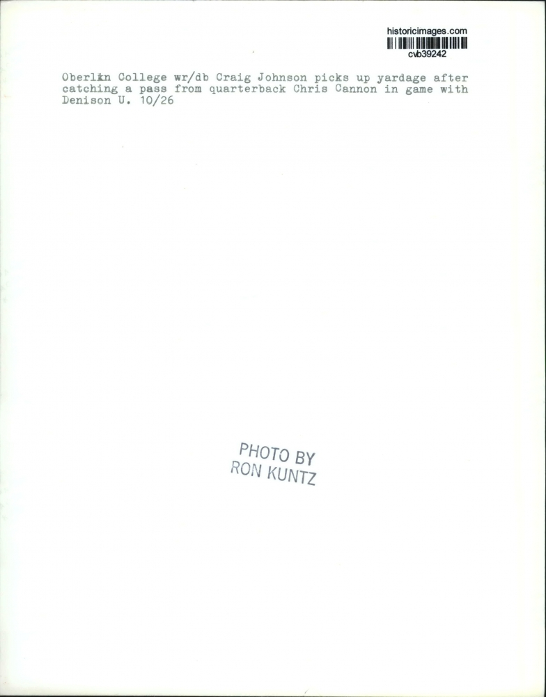 Oberlin College WR/DB Craig Johnson picks up yardage after catching a pass from QB Chris Cannon in game with Denison University.