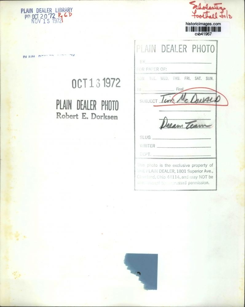 1972 Press Photo Tim McDonald, Scholastic Football Dream Team