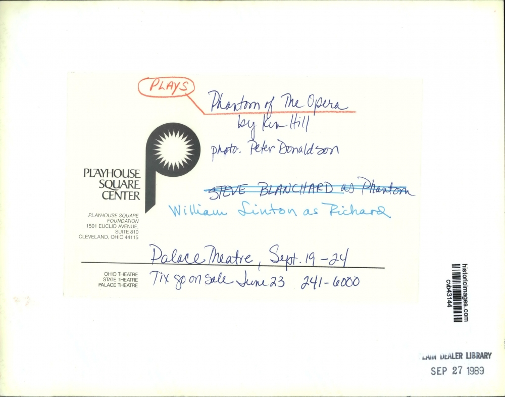 1989 Press Photo William Linton as Richard in Phantom of the Opera by Ken Hill