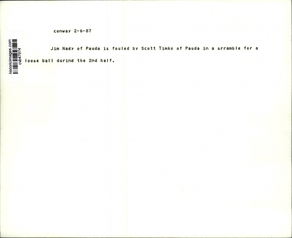 1987 Press Photo Jim Nagy of Pauda is fouled by Scott Timko of Pauda