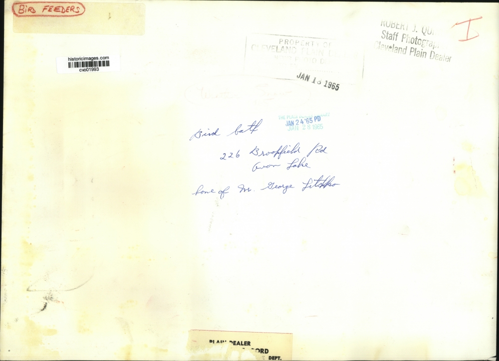 Birds at 226 Brookfield Road Avon Lake, home of Mr. George Litchko