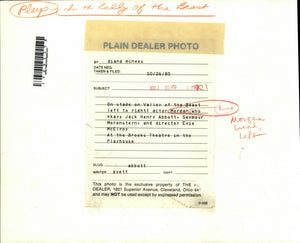 On stage on valley of the Beast, actor Morgan plays Jack Henry Abbott, Seymour Morenstern and director Evie McElroy at the Brooks Theater in the Playhouse.