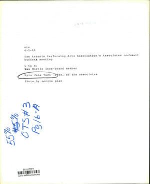 San Antonio Performing Arts Association's Associates cocktail buffet meeting -- Left to Right - Marcie Ince, board member; Myra Jane York, president of the associates (Texas)