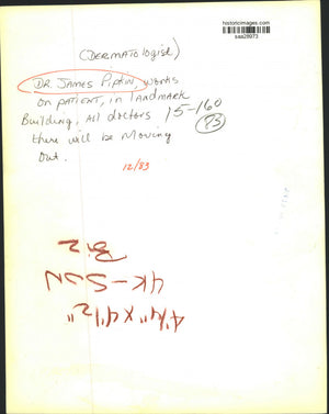 Dermatologist -- Dr. James Pipkin, works on patient in Landmark Building. All doctors there will be moving out (Texas)
