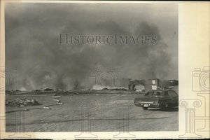 1972 Press Photo Firefighters on scene of junkyard fire - saa64684