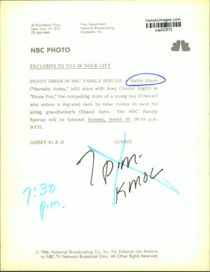 1986 Press Photo Actors Buddy Ebsen and Joey Cramer in "Stone Fox" on NBC