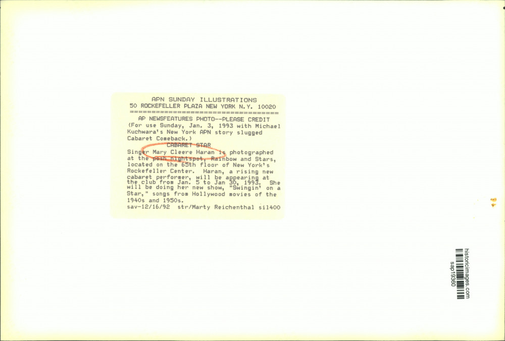 Singer Mary Cleere Haran is photographed at the posh nightspot, Rainbow and Stars, located on the 65th floor of New York's Rockefeller Center. Haran,