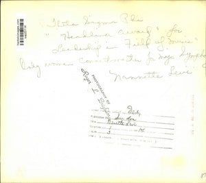 Theta Sigma Phi, "Headliner Award" for leadership in Field of Music". Only women concert master for major Symphony. Nannette Levi