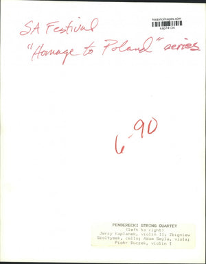Penderecki String Quartet (left to right) Jerzy Kaplanek, violin II; Zbigniew Szoltysek, cello; Adam Smyla, viola; Piotr Buczek, violin I. San Antonio Festival, "Homage to Poland" series