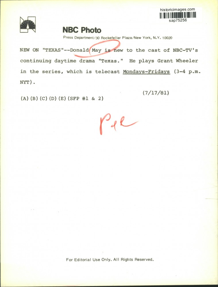 New On "Texas"—Donald May is new to the cast of NBC-TV's continuing daytime drama "Texas." He plays Grant Wheeler in the series, which is telecast Mon