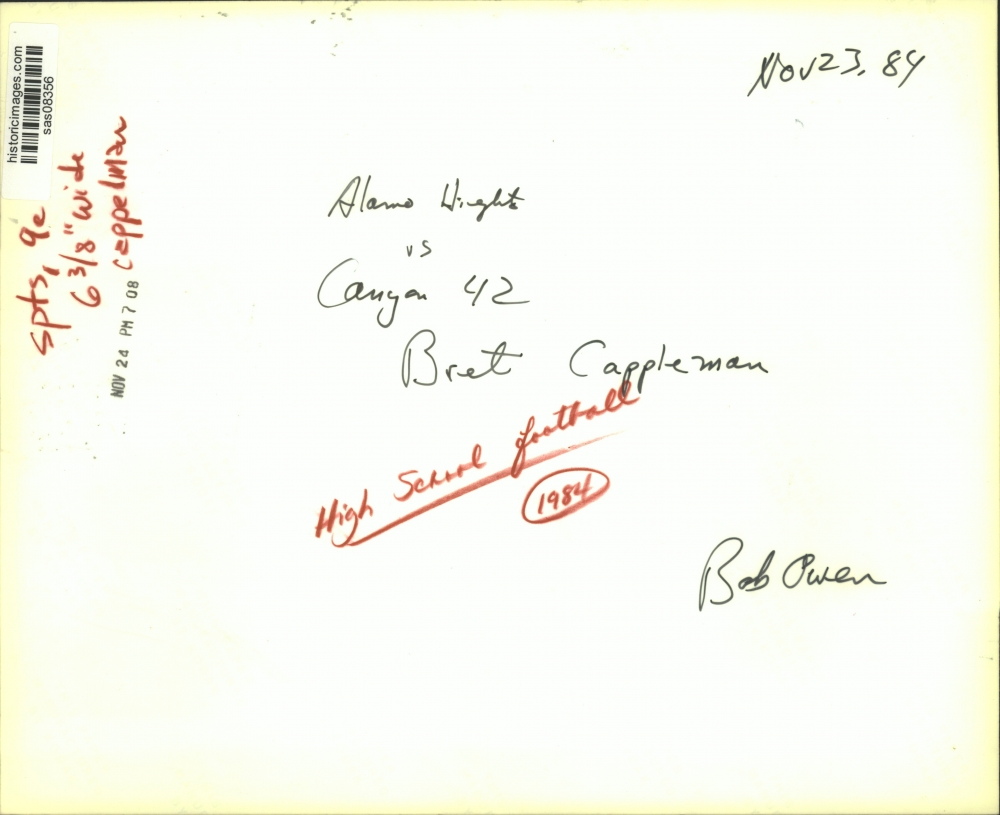 Canyon 42 Bret Coppleman vs. Alamo Heights; high school football 1984
