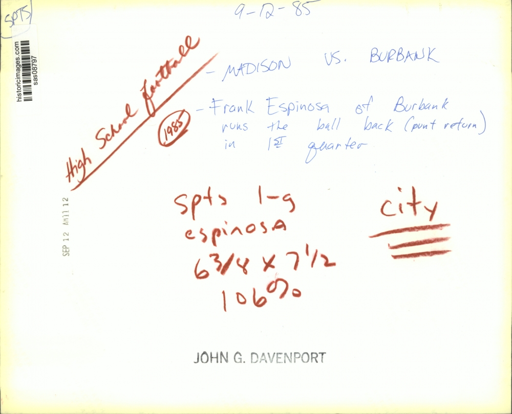 Madison vs. Burbank Frank Espinosa of Burbank runs the ball back (punt return) in 1st quarter High school Football