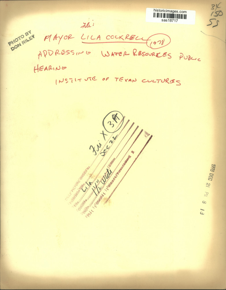 Mayor Lila Cockrell, Institute of Texan Cultures, water resources public hearing