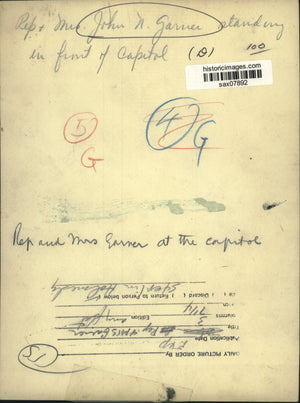 Rep. and Mrs. John N. Garner standing in front of capitol.