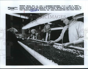 1992 Press Photo Am Ismail meets with workers at Wild Blueberry plant in Machias