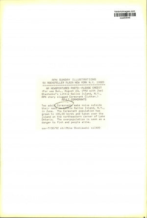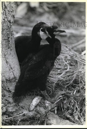 1992 Press Photo Two adult Cormorants outside their nest on Little Galloo Island