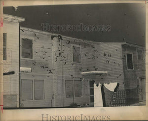 1975 Press Photo Swarm of bats flies close to a home structure - sax31386