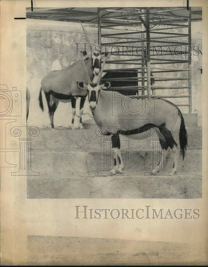 Press Photo Pair of Oryxes standing on steps, Texas - sax31749