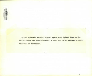 Press Photo Alistair MacLean & Robert Shaw on set of "Force Ten From Navarone"