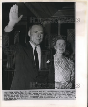 1960 Press Photo Henry Cabot Lodge with wife Emily, may be Nixon's running mate