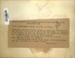 Representative Patrick J. Boland of Pennsylvania who has the distinction of being the only member of congress to be elected by both the Republican and Democratic parties and to receive invitations to both caucuses. He has chosen the Democratic Party and says he will vote for Garner for Speaker. Representative Boland is an avowed anti-prohibition-ist and a believer in a lower tariff.