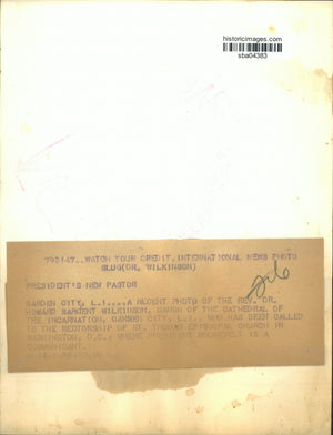 A recent photo of the Rev. Dr. Howard Sargent Wilkinson, canon of the Cathedral of the Incarnation, Garden City, L.I., who had been called to the rector ship of St. Thomas Episcopal Church in Washington, D.C. Where President Roosevelt is a communicant.