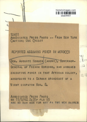 1942 Press Photo Gen Auguste Nogues Governor General of French Morocco
