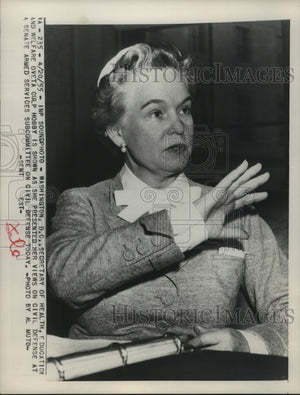 Secretary of Health Education & Welfare Oveta Culp Hobby is shown as she presented her views on civil defense at a Senate Armed Services Subcommittee meeting on civil defense today.