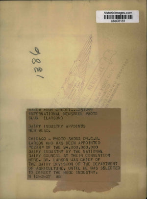 1927 Press Photo Dr. C. W. Larson Has Been Appointed "Czar" of Dairy Industry