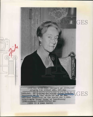 1962 Press Photo Grand Duchess Charlotte, ruler of Luxembourg - sba08828
