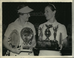 1937 Press Photo Barbara Duncan and Florence Maxwell with their trophies