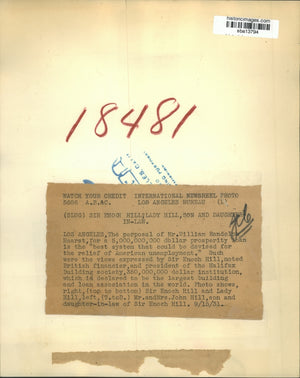 The proposal of Mr. William Randolph Hearst, for a 5,000,000,000 dollar prosperity loan is the "best system that could be devised for the relief of American unemployment." Such were the views expresses by Sir Enoch Hill, noted British financier and president of the Halifax Building society, 350,000,000 dollar institution, which is declared to be the largest building and loan association in the world. Photo shows right, (top to bottom) Sir Enoch Hill and Lady Hill, left, Mr. and Mrs, John Hill, son ans daughter in law of Sir Enoch Hill.