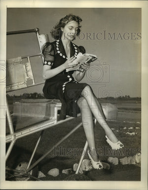 Evalyn W. McLean of Washington DC catches up on her reading as she waited at the Albany, New York airport, August 18, for a plane to the Capital where, she said, she will marry 57 year old Senator Robert Reynolds of North Carolina. The 20 year old heiress did not say when the wedding will take place.