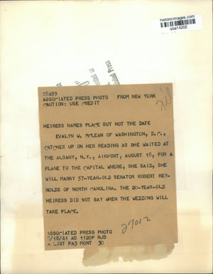 1941 Press Photo Evalyn W. McLean announces wedding plans with Robert Reynolds