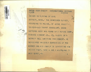 1944 Press Photo Confessed slayer of J Raulston is Richard Vincent Jr