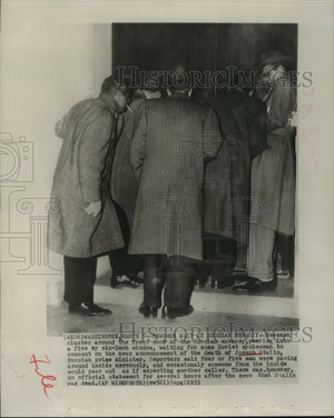 1953 Press Photo Newsmen at the Russian Embassy wait for Stalin's death updates