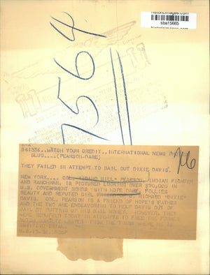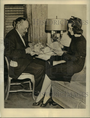 Col. Bill Pearson, Indian Fighter and Ranchman is pictured looking over $70,000 in U.S Government Bonds with Rose Dare, Follies Beauty and reputed Girl Friend of J. Richard Dixie Davis. Col. Pearson is a friend of Hope's father and the two are endeavoring to held Davis out of Jail by putting up his Bail Money, However they Dutch Schultz Lawyer from the town where he us awaiting Trial.