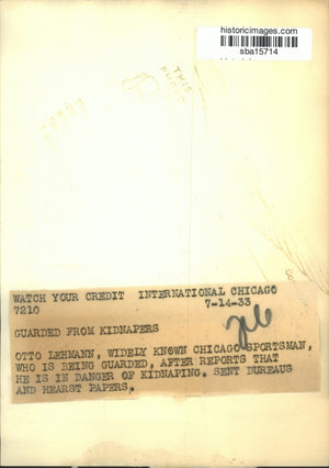 1933 Press Photo Otto Lehmann Chicaho sportsman guarded dur to kidnap threats