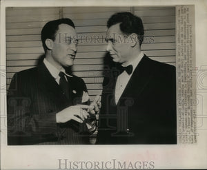 Senator Glen H. Taylor of Idaho, running mate of Henry Wallace on the third party ticket, speaks with Alexander S. Panyushkin, new Soviet ambassador to the United States at dinner of National Council of American-Soviet Friendship given in honor of Panyushkin here last night.