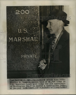 1947 Press Photo Bleriot H.Lamarre enters U.S. District Court in Washington