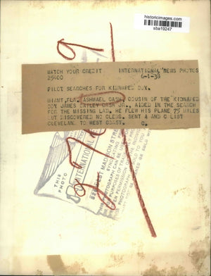 Ashmael Cash, cousin of the kidnapped boy James Bailey Cash Jr., aided in the search for the missing lad. He flew his plane 75 miles but discovered no clews.