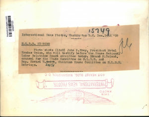 N.L.R.B. Hearing Photo shows (LtoR) John P. Frey, President Metal Trades Union, who will testify before the House National Labor Relations Board committee today. Edmund M. Tolan, counsel for the House Committee on N.L.R.B. and Rep. Howard W. Smith, Chairman House Committee on N.L.R.B. hearings.