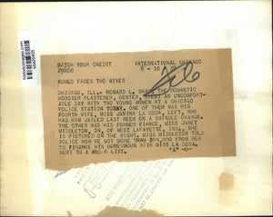 Howard L Shaw the romantic Hoosier plasterer spent an uncomfortable day with two young women at a Chicago Police Station today. One of them was his fourth wife Miss Janina La Boda left who had him jailed last week on a swindle charge. The other was his former fiance Miss Janet Middleton 24 of West Lafayette IN. She is pictured on the right. Miss Middleton told police how he got more than $10000 from her to finance his honeymoon with Miss La Boda