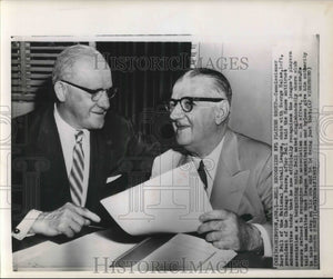 1957 Press Photo Commissioner Bert Bell talks with George Halas - sba20498