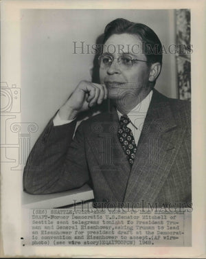 Former Democratic US Senator Mitchell of Seattle sent telegrams tonight to President Truman and General Eisenhower asking Truman to lead an Eisenhower for President draft at the Democratic Convention and Eisenhower to accept.