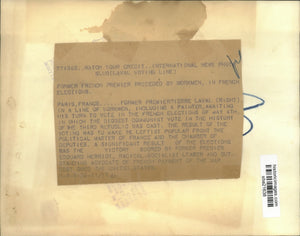 Former Premier Pierre Laval right in a line of workmen including a painter awaiting his turn to vote in the French elections of May 4th in which the biggest Communist vote in the history of the Third Republic was cast. The result of the voting was to make the Leftist Popular Front the political master of France and the Chamber of Deputies. A significant result of the elections was the victory scored by former Premier Edouard Herriot radical Socialist leader and outstanding advocate of French payment of the war debt owed the United States.
