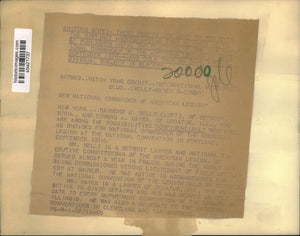 NY Raymond J Kely left of Detroit Mich and Edward A hayes of Decatur Ill who are among the possibilities mentioned as choices for National Commander of the American Legion at National convention in Portland Sept 15 Mr Kelly is Detroit lawyer and national executive committeeman of American Legion He served almost a year in France during the world war being commissioned 2nd Lt of field artillery at Samumur He was active in arrangements for the convention of Legion held in Detroit Mr Hayes is lawyer of Decatur Ill who is active in civic affairs and who has served as delegate to every department convention of the Legion in Illinois He was also a delegate to National conventions in Cleveland and San Antonio