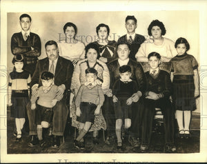 Tied for third place in that remarkable maternity marathon, the winner to which will win $500,000 is this, The Darrigo Family. Rear row, left to right are Frank, Annie, Mary, Londo and Theresa, middle row, Irene, Mrs Darrigo, Mrs. Darrigo, Louis, John and camilla. Front row, Joseph and Angelo.